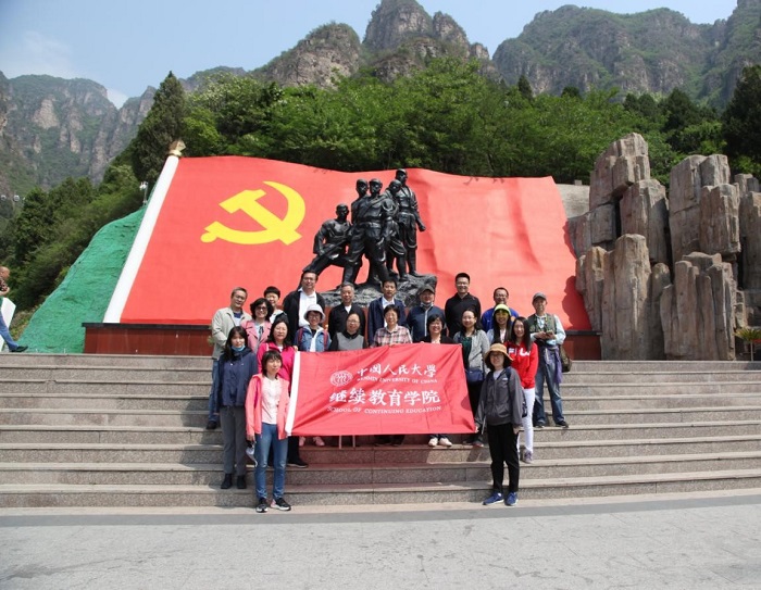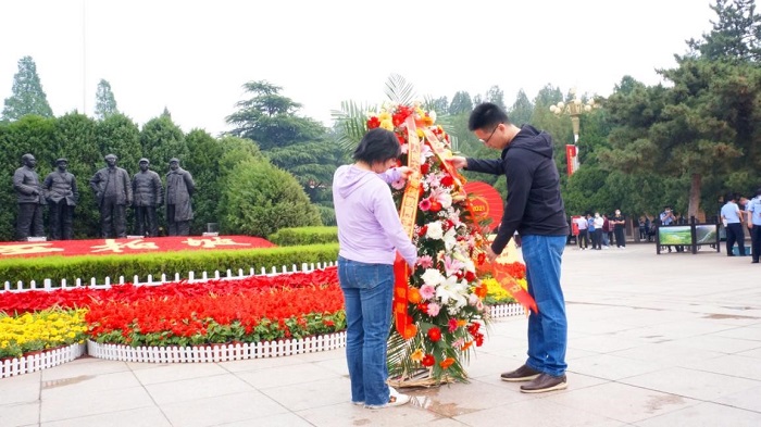 5月13日上午,学习队伍一行来到西柏坡回顾革命历史、学习西柏坡精神。在西柏坡纪念馆广场进行情感教学,向五大书记铜像献花致敬,重温入党誓词,合影留念。