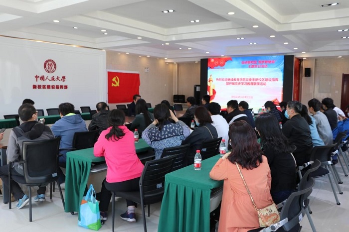 新校区建设直属党支部党建工作小组董祎同志领学了习近平总书记关于京津冀协同发展、北京城市副中心建设的重要论述精神,系统全面地介绍了北京城市副中心、通州新校区的规划建设情况。董祎同志还带领大家系统回顾了中国人民大学的校园建设史,还通过图片展示和视频播放等方式介绍了通州新校区的整体规划、建设理念、建筑过程和周边区域规划建设情况。最后,还就威尼斯人娱乐场线上平台 党员们关心的问题进行了解答。