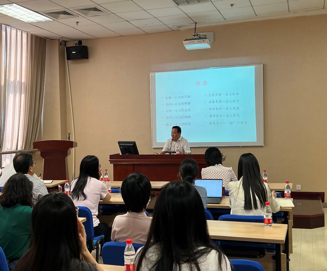 徐拥军教授结合多年公文写作教学和重要文稿起草经历,引用丰富的理论知识和生动的案例,详细讲解了公文写作的基础知识和常用公文写作技法。徐拥军教授将公文写作重点概括为“立意定题、言之有物”,“谋篇布局、言之有序”,“选材取料、言之有据”,“遣词造句、言之有范”,“排版设计、'颜'之有形”,形象生动,简便易懂。此外,培训内容紧贴威尼斯人娱乐场 教职工日常公文写作工作实际,对于提升公文实操能力具有很强的针对性、指导性、实用性。