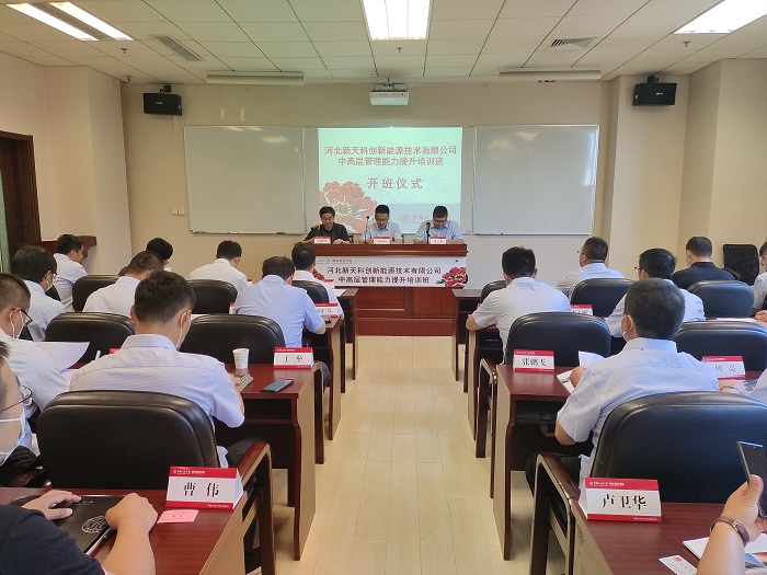 2021年6月19日至6月22日,受河北新天科创新能源技术有限公司委托,我院举办了新一期的“河北新天科创新能源技术有限公司中高层管理能力提升培训班”。6月19日举办了开班仪式,威尼斯人娱乐场线上平台 副院长李培利和河北新天科创新能源技术有限公司总经理张二辉出席开班仪式并讲话。
