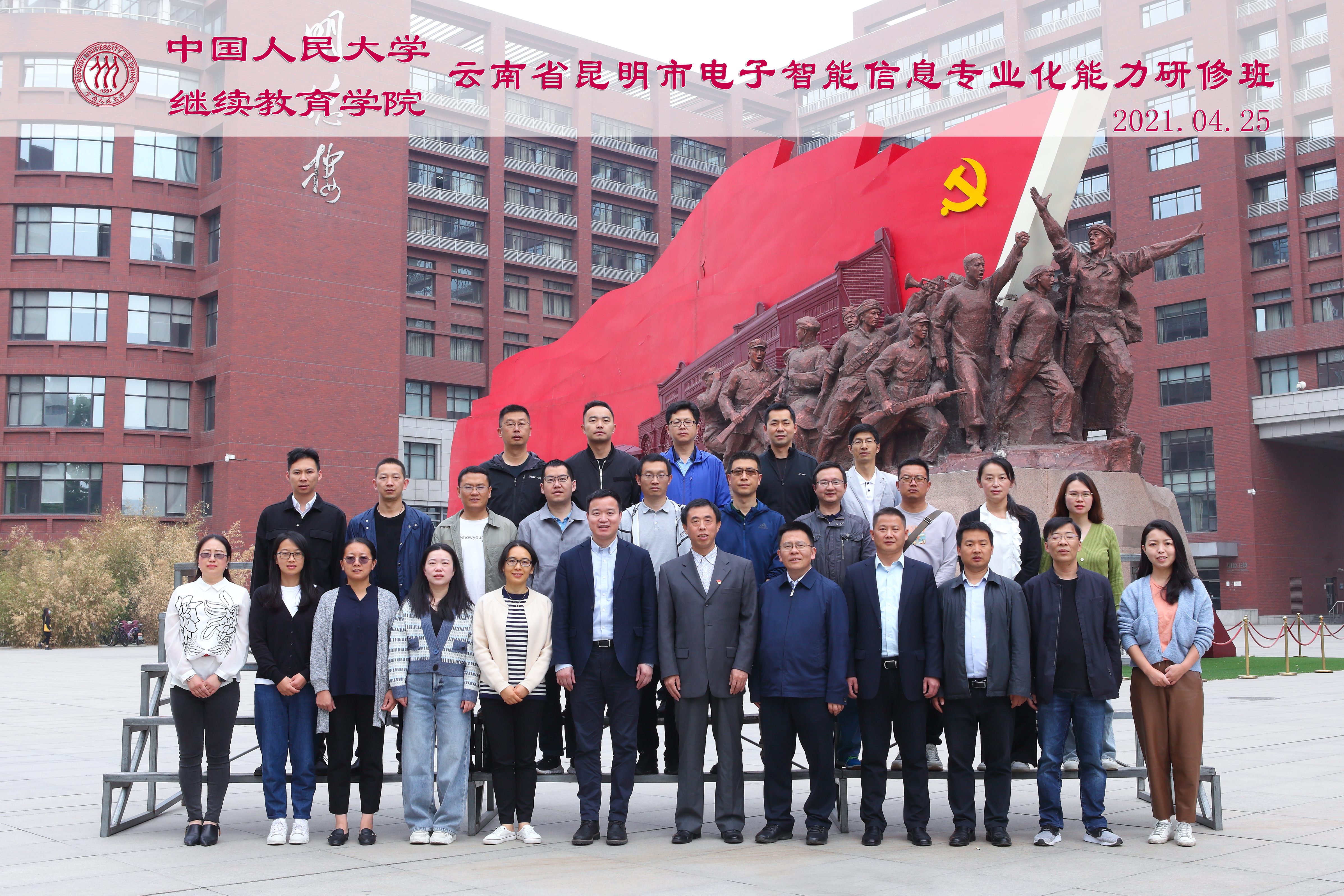 2021年4月25日至29日,受中共昆明市委组织部委托,我院举办“云南省昆明市电子智能信息专业化能力研修班”,来自昆明市相关委办局和下辖区县相关负责人近30人参加培训学习。