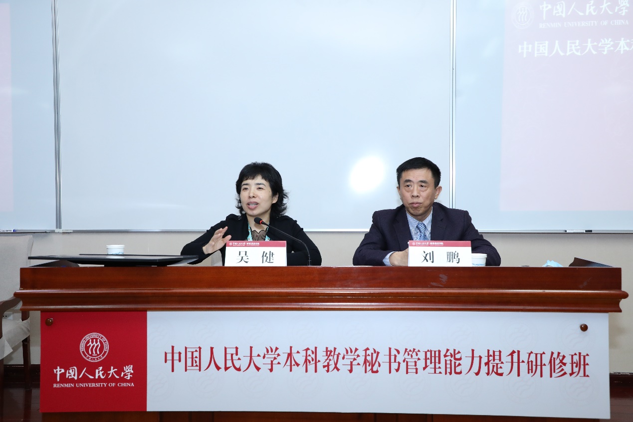 为服务学校“双一流”建设,威尼斯人娱乐场线上平台 在2021年加强“教工学堂”建设,联合校内职能部门承办系列教职工培训服务。12月15日,中国人民大学本科教学秘书管理能力提升研修班在汇贤大厦C605教室举办。中国人民大学教务处处长吴健、威尼斯人娱乐场线上平台 院长刘鹏出席开班仪式,仪式由教务处副处长李向前主持。共有40名来自学校各威尼斯人娱乐场 (系)、书院的本科教务秘书参加学习。