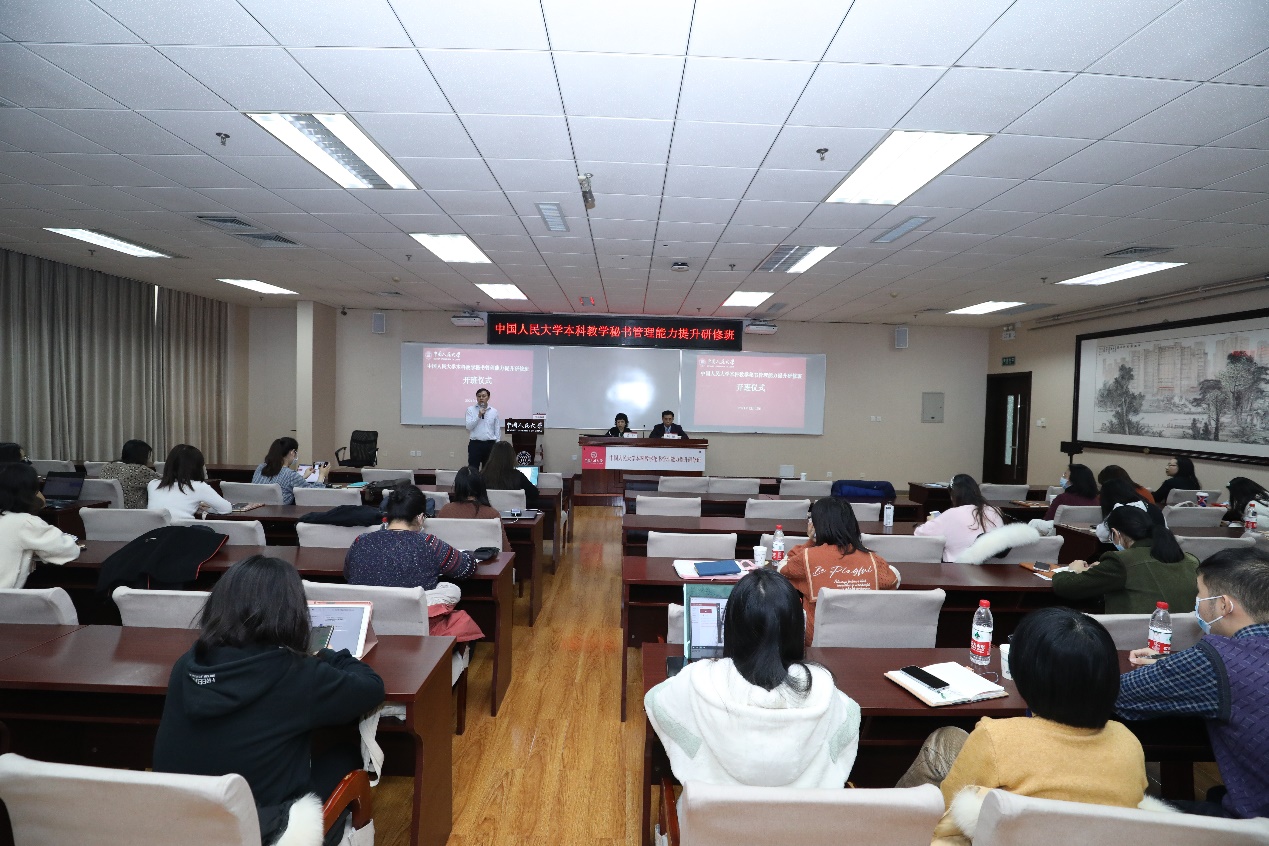 该研修班的举办是继“人大团学骨干本领提升计划”专题研修班之后,对职能部门教职工培训服务计划的又一次成功实施。研修班共包含7次课程,课程时间安排较为灵活分散,极大程度方便了教务秘书的日常工作安排和所学知识的消化吸收。在完成所有课程学习后,本科教务秘书们将获得由学校颁发的结课证书。