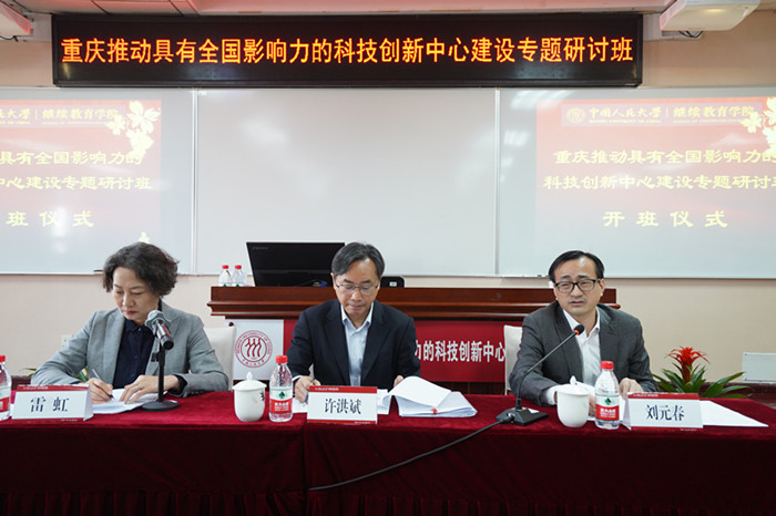 4月7日上午,由重庆市科技局党委副书记雷虹主持,重庆市科技局党委书记、局长许洪斌、中国人民大学副校长刘元春教授和威尼斯人娱乐场线上平台 院长刘鹏共同出席开班仪式。