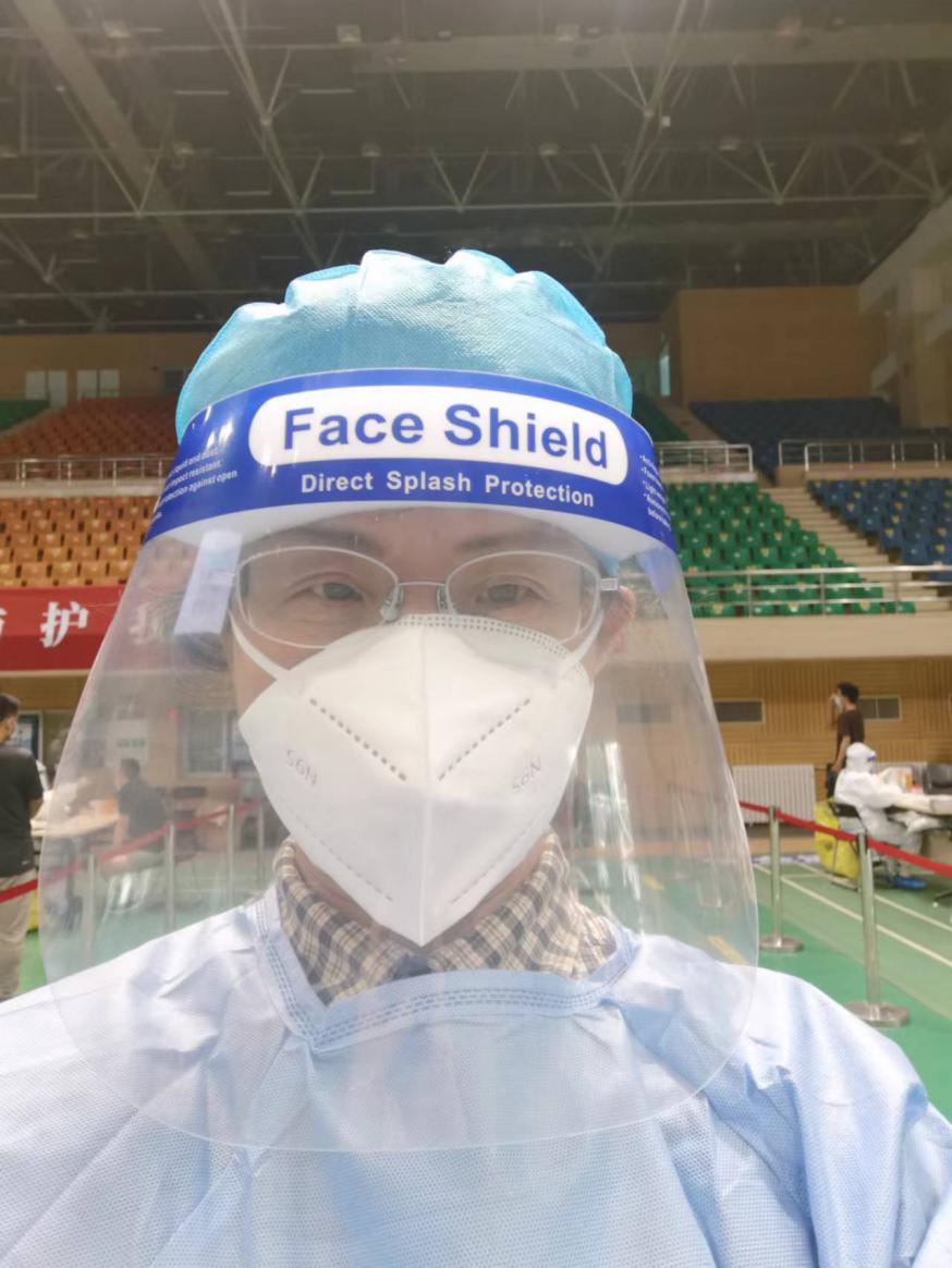 陈霓老师在志愿者工作结束后谈起这次难忘经历时说:“这张照片是当天在学校核酸检测现场工作时,被排队等候检测的校工会副主席认出来拍下的,很值得纪念。迄今为止,我来校工作快二十年了,似乎还是第一次有机会这样服务人大师生,很荣幸。我相信,不论是穿上防护服去学校做志愿工作还是居家办公,都是一样在用不同的方式守护学生和校园的安全。不论人在不在校园,我们的心都在;不论身居何处,我们都会共担一份责任;惟愿学校平安、北京平安、国家山河无恙。”