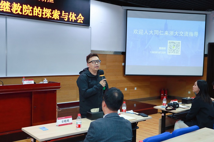 讲座中,童晓明教授从浙江大学威尼斯人娱乐场线上平台 的定位与理念、转型发展、疫情应对三方面展开详细具体的讲解与分享。