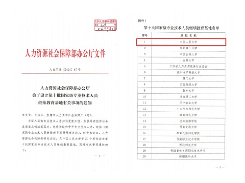 2020年,被人力资源社会保障部确定为“第十批国家级专业技术人员继续教育基地”;