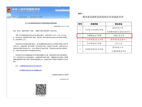 2020年,入选“教育部首批职业院校校长培训基地”(全国仅五家)。