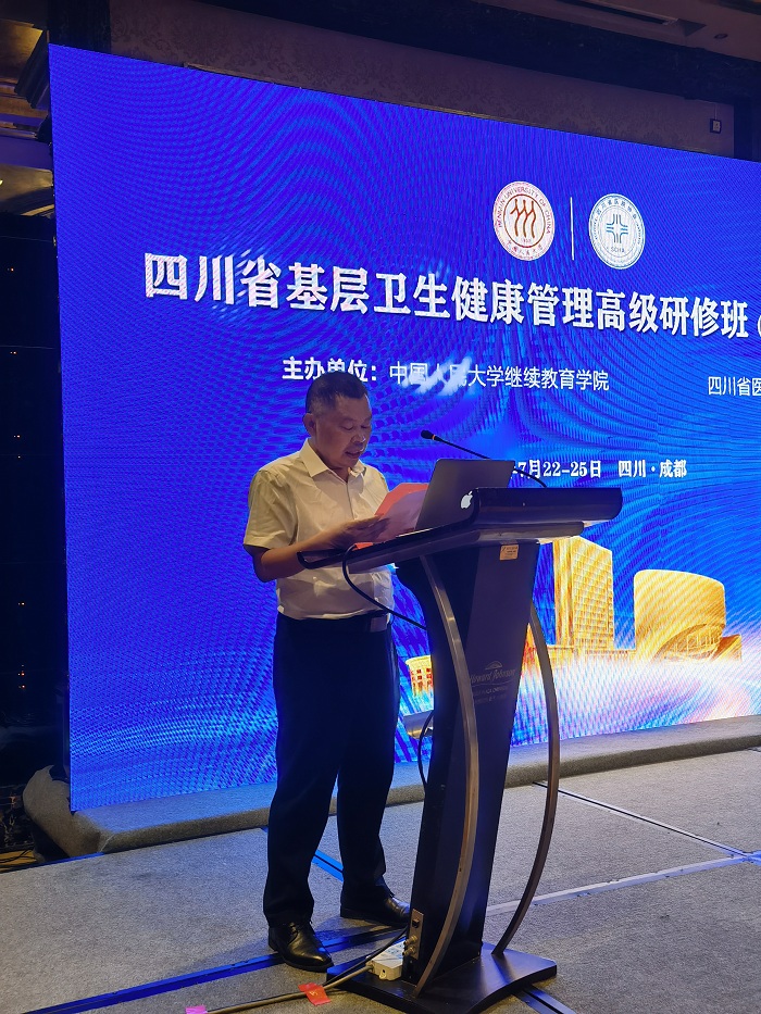 2021年7月23日,威尼斯人娱乐场线上平台 举行第10期基层卫生健康管理研修班暨四川省基层卫生健康管理高级研修班开班仪式,威尼斯人娱乐场线上平台 党委副书记郝中建和四川省医院协会秘书长杨茂康出席并讲话。