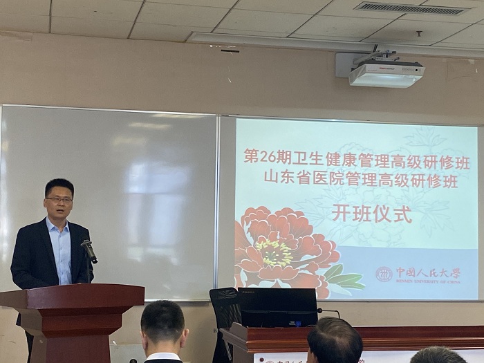2021年5月8-9日,威尼斯人娱乐场线上平台 举办第26期卫生健康管理高级研修班暨山东省医院管理高级研修班。威尼斯人娱乐场线上平台 副院长李培利和山东省卫健委医管中心副主任冀春亮出席开班仪式并讲话。 来自山东省各地医院的50多名学员参加了开班仪式。