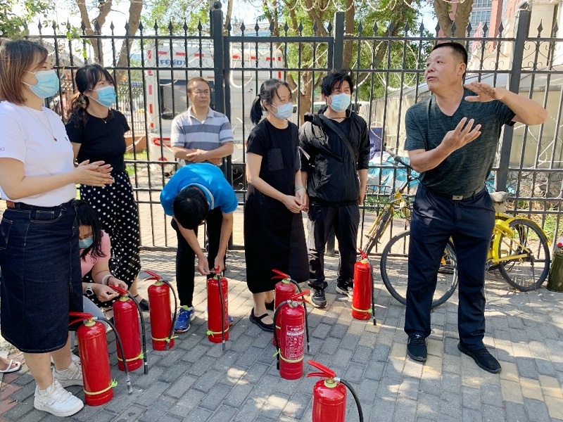 本次消防安全培训分为办公与家居场所消防安全知识讲座和灭火器实操使用两部分。大家首先在教室集中收听了起火与灭火常识、火灾案例分析和常用灭火器材的使用等消防安全相关知识。讲座结束后,各位老师来到户外空地,在学校保卫处的安全保障下,现场学习了干粉灭火器的使用方法与注意事项,并进行了实操使用。