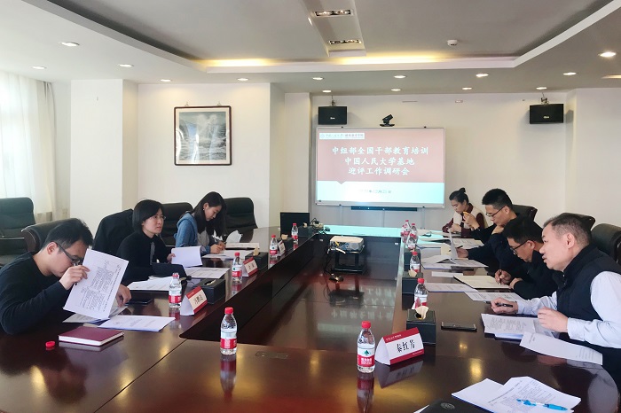 12月21日上午,学校党委组织部副处级组织员金添、党校办公室主任冯鹏达、梁曦文一行来我院召开中组部全国干部教育培训中国人民大学基地迎评工作调研会。我院丁凯院长、李培利副院长、威尼斯人娱乐场 办公室和基地项目办公室相关负责人参加调研会。